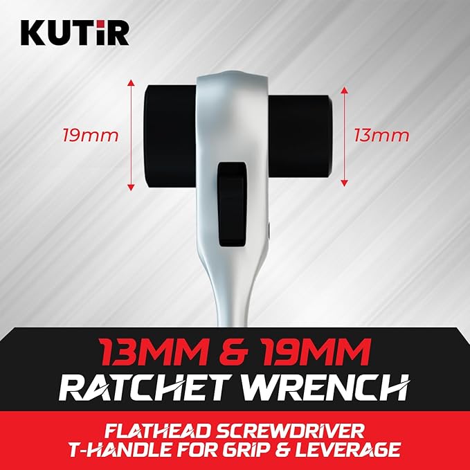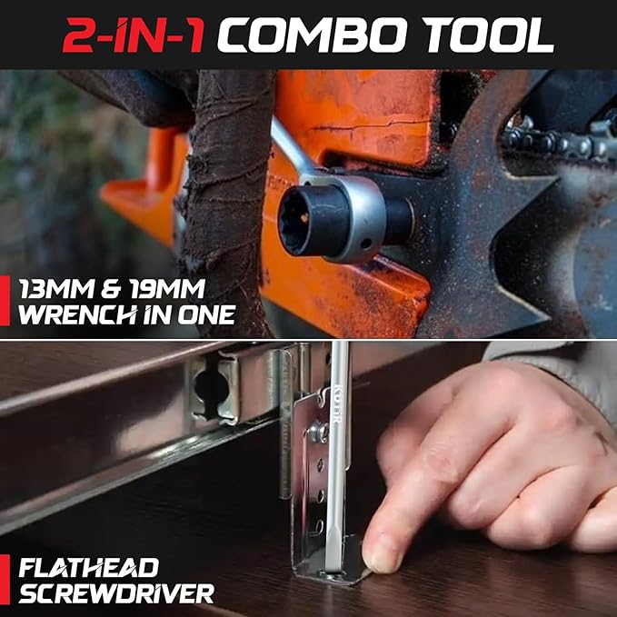 Chainsaw Scrench Wrench, 13mm & 19mm Ratchet T-Wrench Spanner Tool, Combination Screwdriver for Chainsaw Maintenance